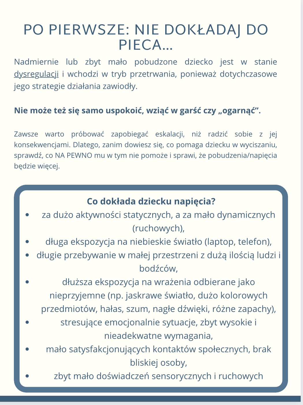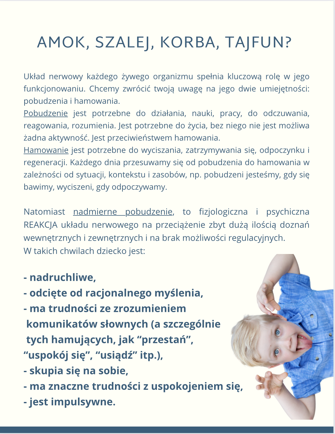 - Jak rozumieć pobudzenie i czym jest stan? nadmiernego pobudzenia u dziecka?
