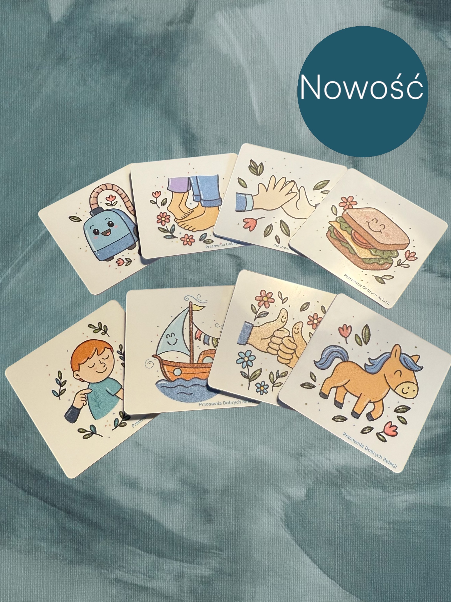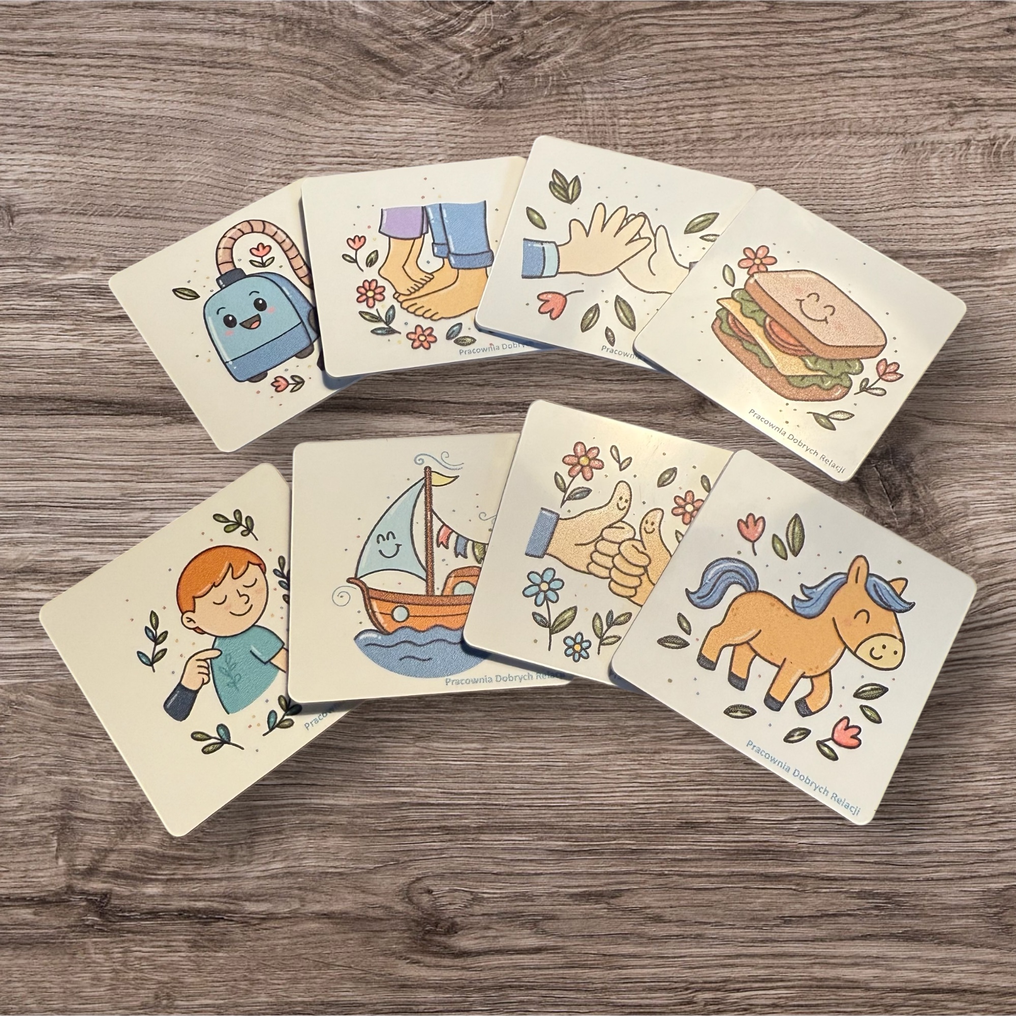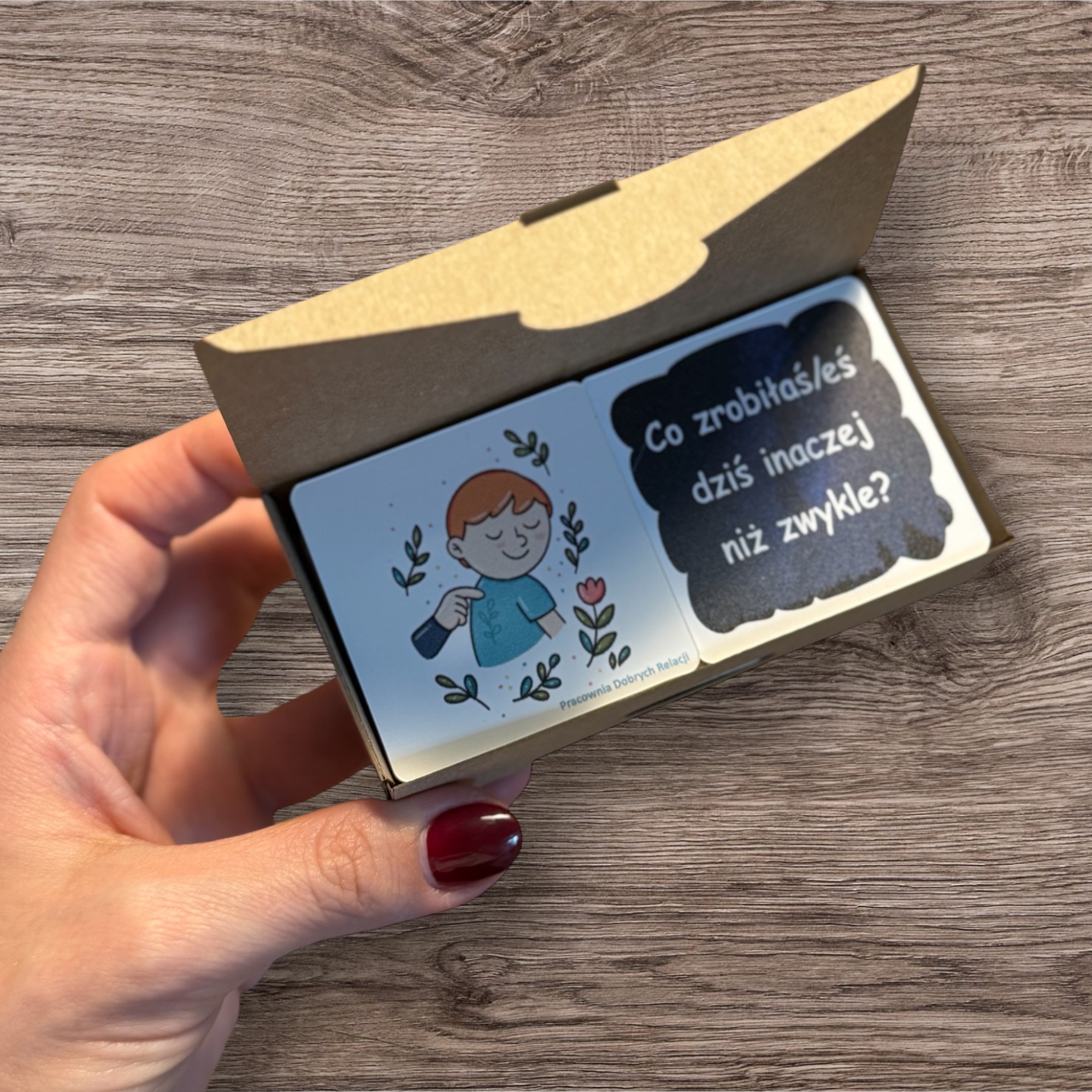 To zabawka w postaci kostki, z wymienialnymi ściankami. Zawiera gotowy zestaw zabaw wyciszających i zestaw pytań zachęcających do rozmowy.