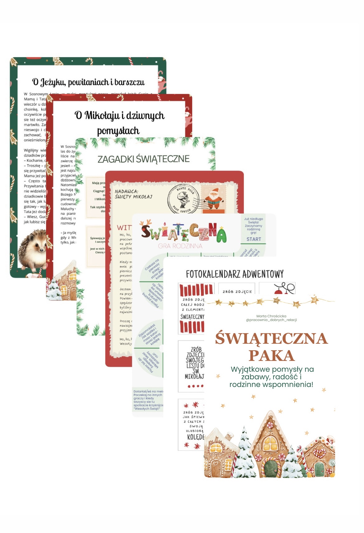 •Bajka o Świętym Mikołaju i dziwnych pomysłach i Bajka o Jeżyku, powitaniach i barszczu To dwie bajki, które napisałam dla Twojego Dziecka i które poruszają tematy: Świętego Mikołaja, prezentu „za bycie grzecznym”, nieśmiałości, która pojawia sie podczas przywitania z gośćmi, namawiania dziecka do jedzenia oraz spędzania Świąt w komforcie i po swojemu.