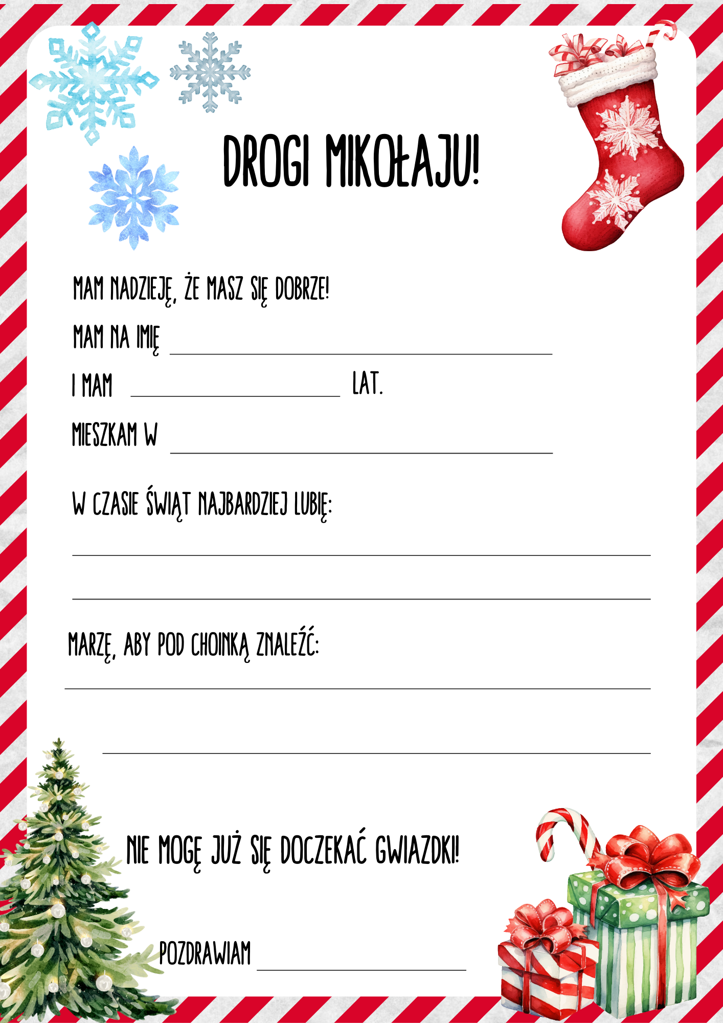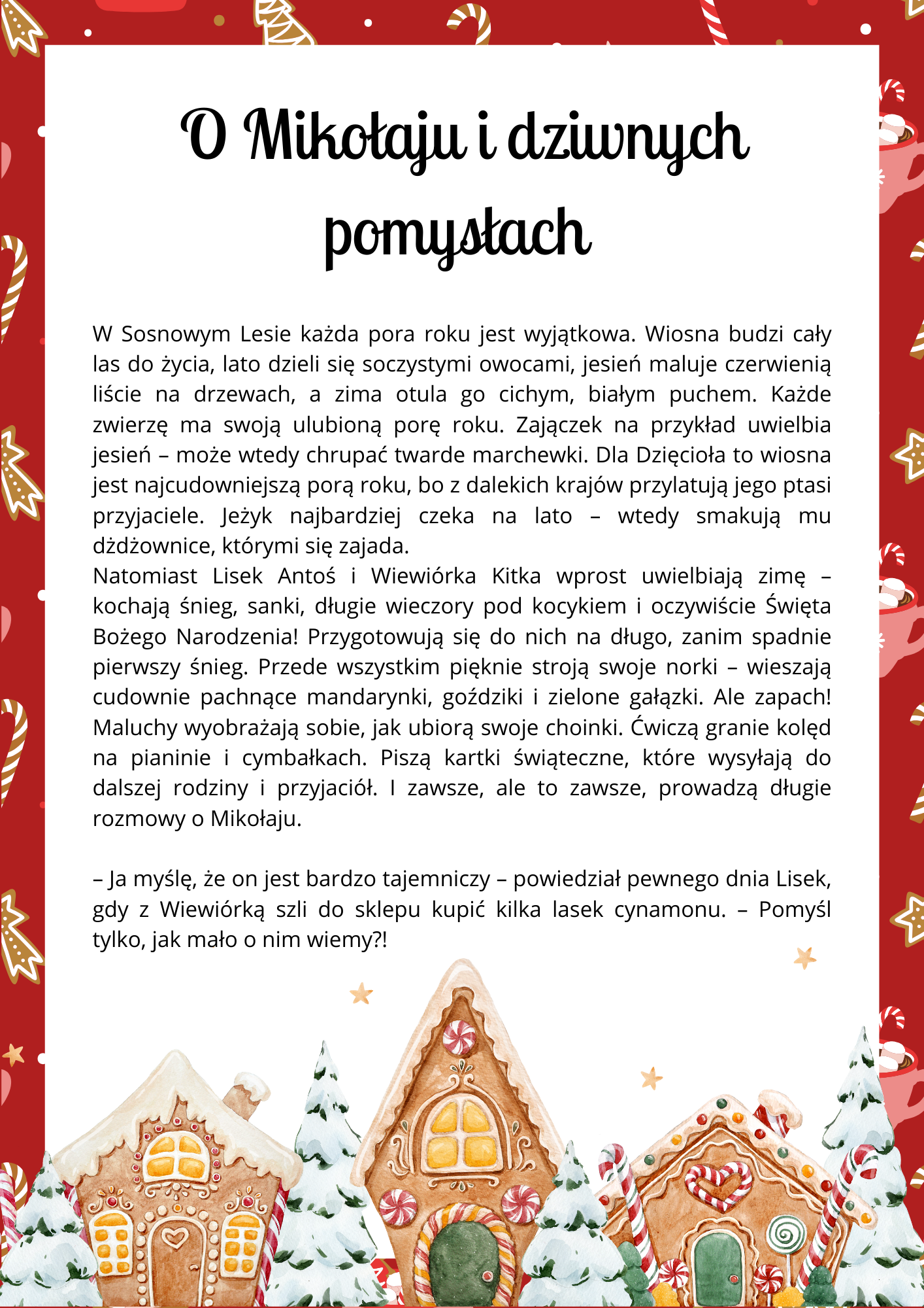 •List od Mikołaja i List do Mikołaja W Liście od Mikołaja twoje dziecko dowie się, co Mikołaj najlepiej zapamiętał ze Świąt, gdy był małym chłopcem (a nie były to prezenty!). W Liście do Mikołaja Twoje dziecko napisze, co najbardziej lubi podczas Świąt i oczywiście, o jakim podarunku marzy.
